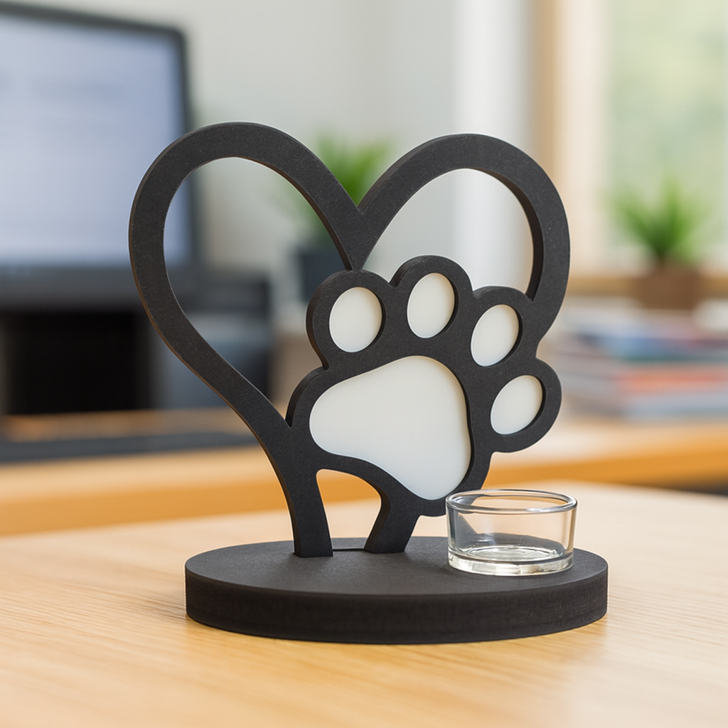 Theelichthouder Hart met MDF Sublimatie Hondenpoot