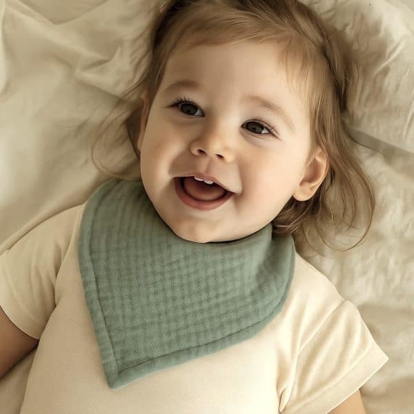 De Hydrofiele Bandana slab – Denim Blue is een stijlvolle én functionele baby-slab gemaakt van 100% zuivere hydrofiele katoen. Dankzij de zachte, absorberende stof blijft je kleintje droog en comfortabel terwijl kwijl en vochtige hapjes effectief worden opgevangen. Het trendy bandana-design geeft elke outfit een leuke look én beschermt het nekje tegen nattigheid — ideaal voor baby’s met doorkomende tandjes en dagelijks gebruik. De slab heeft drie verstelbare drukknopen, waardoor hij makkelijk op maat te maken is en lang meegaat terwijl je kindje groeit. Bovendien is hij machinewasbaar en onderhoudsvriendelijk, waardoor hij perfect past bij het drukke leven van ouders. Verkrijgbaar in verschillende kleuren en met een afmeting van ca. 40 x 19 cm.
