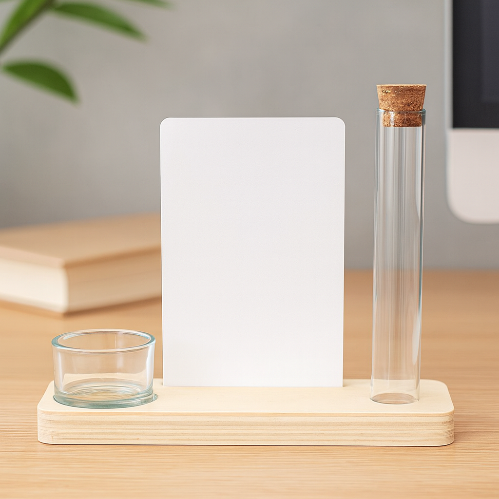 Dit veelzijdige plankje combineert een glazen bloemenbuisje en een theelichthouder met een sublimatie rechthoek. Het MDF-paneel met witte toplaag en subtiele sinaasappelstructuur is perfect voor sublimatie, waardoor je eenvoudig een persoonlijke foto, tekst of ontwerp kunt toevoegen.