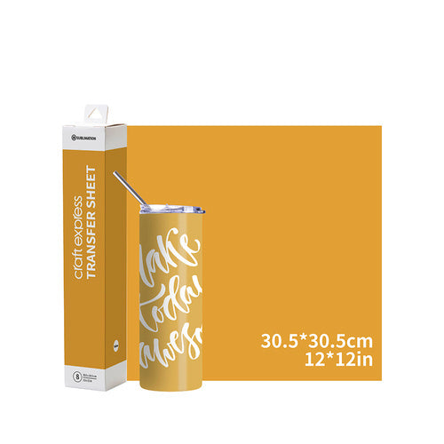 Deze gele sublimatie transferfolie maakt het mogelijk om ontwerpen te creëren zonder sublimatieprinter. De kleur zit al in het materiaal, waardoor je eenvoudig designs kunt uitsnijden en overbrengen op verschillende producten.