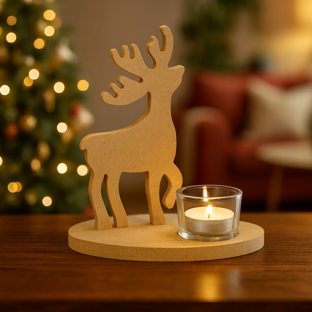 Deze MDF rendier theelichthouder is een sfeervolle toevoeging aan je interieur – ideaal voor de feestdagen of als decoratief accent het hele jaar door!