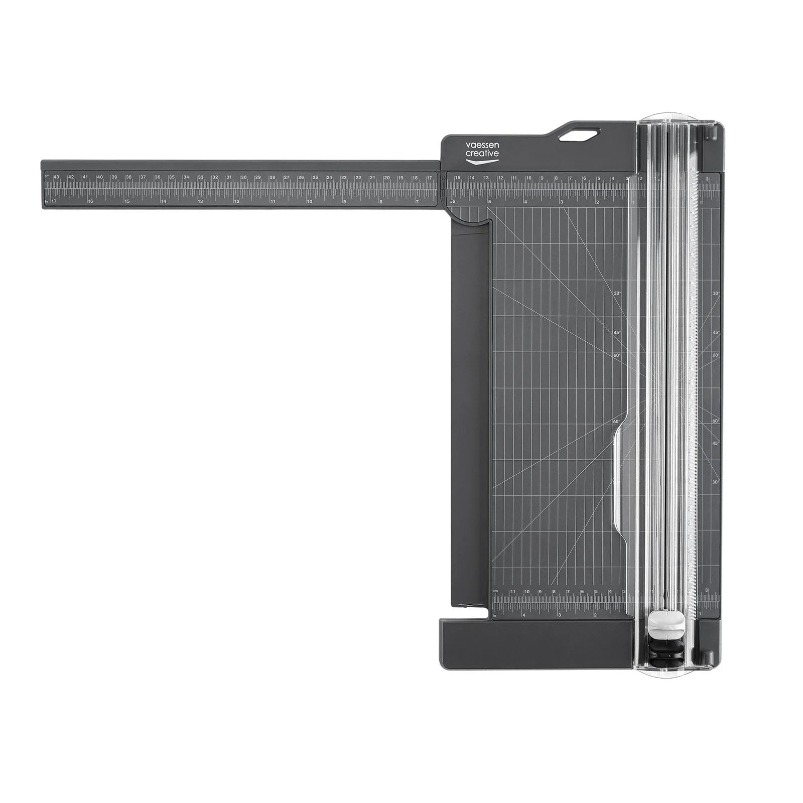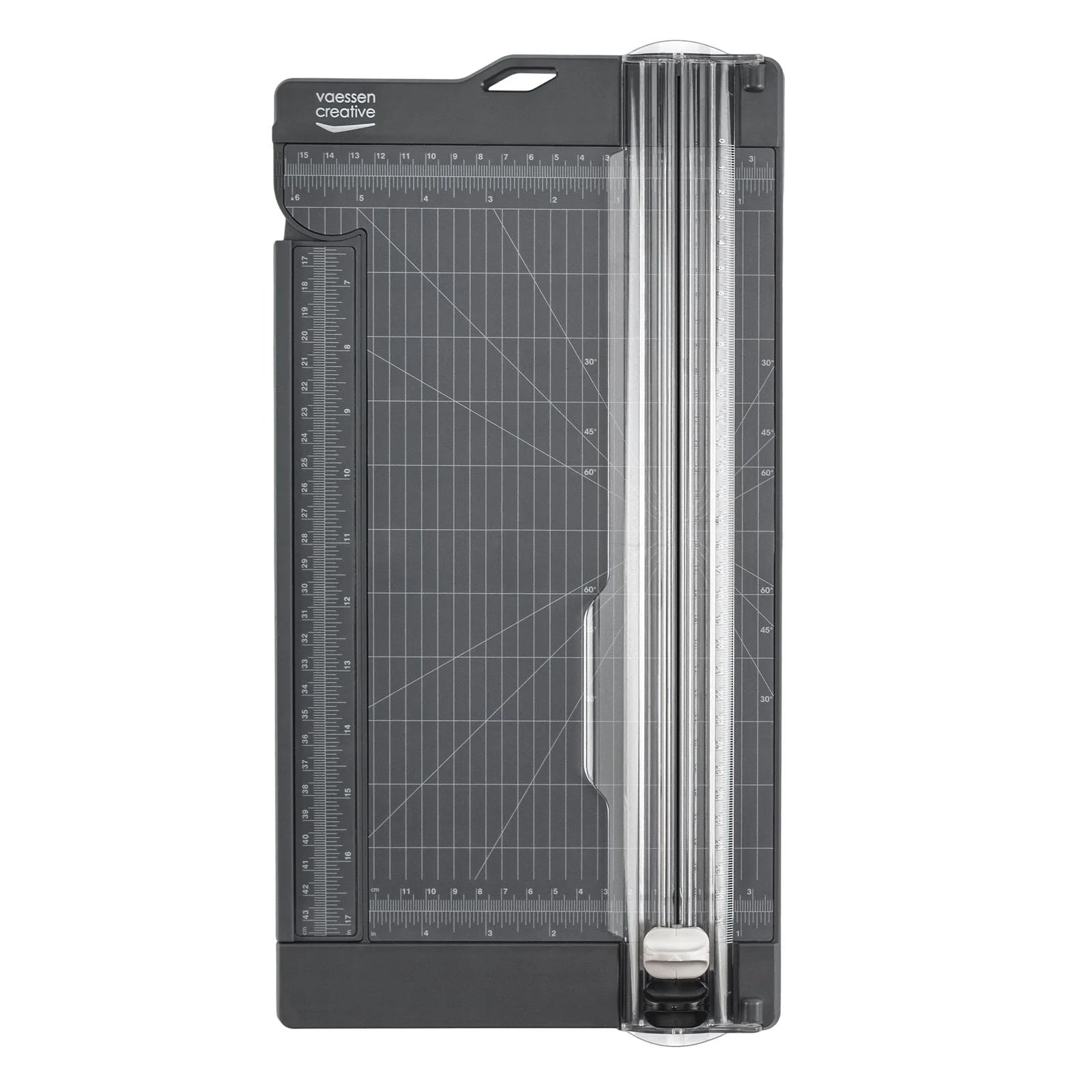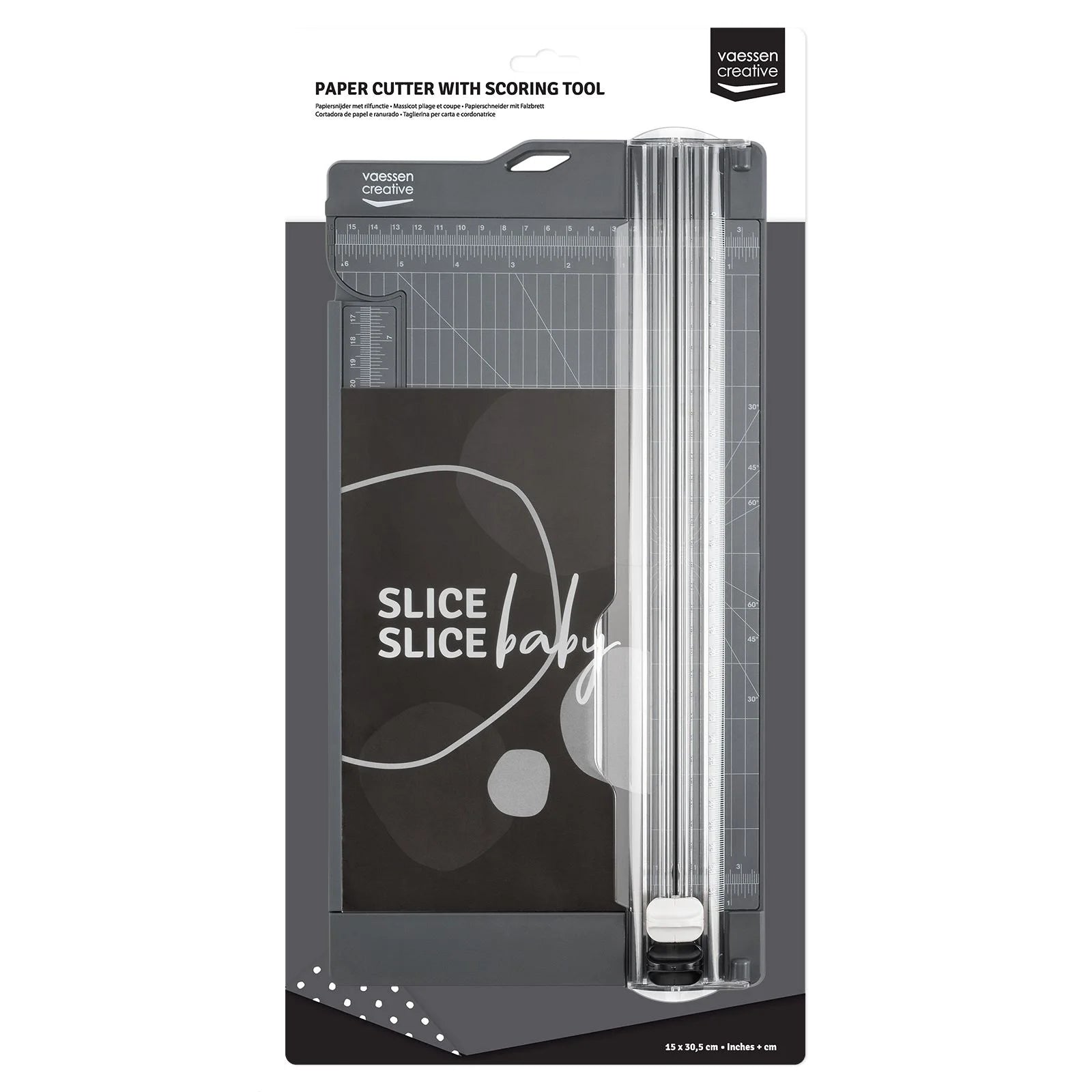 De Vaessen Creative papiersnijder met rilfunctie is de perfecte tool voor het nauwkeurig snijden van diverse materialen zoals papier, cardstock, foam, kurk, vilt, leer, stof en vinyl. Met gemak snijd je materialen tot 30,5 x 15,2 cm en maximaal 5 vellen van 80 g/m² tegelijk (400 g). Het werkoppervlak van de papiersnijder kun je dankzij het liniaalverlengstuk nog eens uitbreiden tot 43 cm. Daarnaast beschikt het grid over diagonale lijnen, waarmee je papier eenvoudig in een hoek van 30, 45 of 60 graden kunt snijden. Deze paper cutter en scoring tool heeft een handige maataanduiding in zowel inches als centimeters. Ideaal voor kaarten maken, scrapbooking en meer.