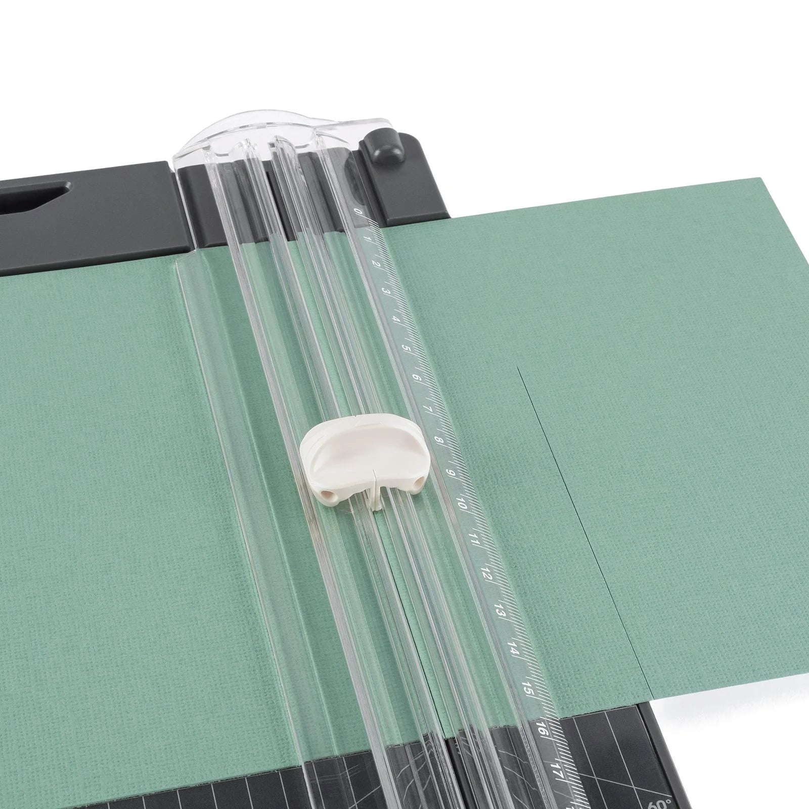 De papiersnijder is voorzien van een ophangoog, zodat je hem eenvoudig kunt opbergen. De verhoogde rand op de papieruitlijning helpt je om het papier altijd kaarsrecht te positioneren. Met de handige papierklem – ook wel vlekbeschermer – blijft je papier stevig op zijn plaats tijdens het snijden, zonder ongewenste vingervlekken. Druk de klem zachtjes naar beneden voor optimale grip. Tegelijkertijd biedt de kunststof beschermrand extra bescherming voor je vingers. Kortom, een onmisbaar hulpmiddel voor iedere creatieveling!